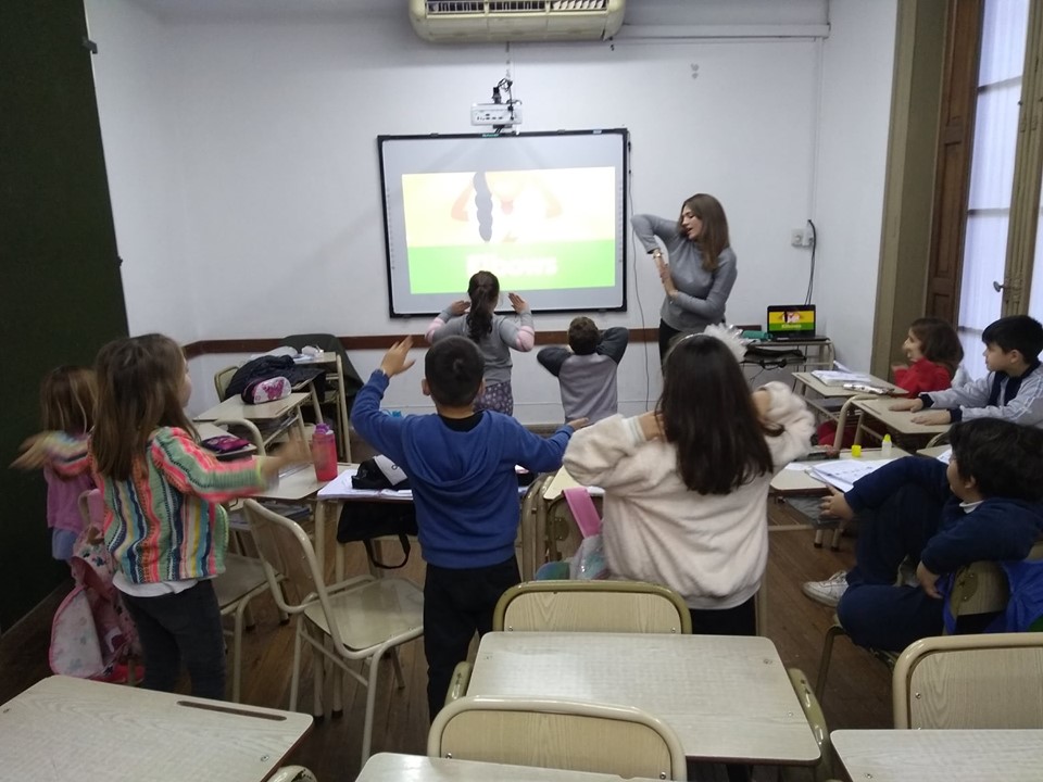 Se instaló un proyector fijo en el aula donde tenemos la pizarra interactiva. En las fotos, Lucía Marzioni, profesora de Cultural, utilizando la nueva tecnología con un grupo de niños en la sede Sur de nuestra Cultural. 👏